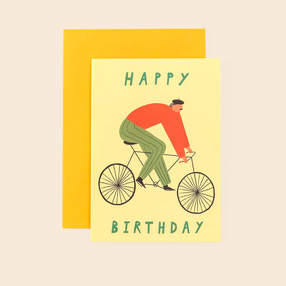 A greeting card of a dapper looking cyclist on a bike with his beret and moustache, this birthday card is perfect for the cycling enthusiast, or anyone who appreciates a touch of style.